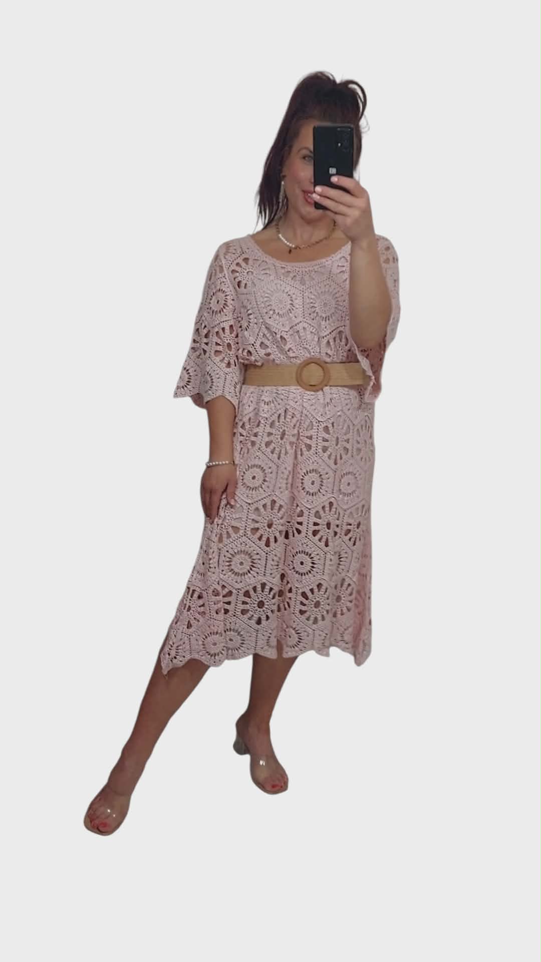 Lekka, zwiewna, kobieca, stylowa, ażurowa sukienka idealnie nadaje się na wyjątkowe wyjścia np. komunie, wesela czy inne przyjęcia. Ażurowy splot sukienka nadaje jej oryginalnego charakteru, dzięki halce sukienka jest komfortowa w noszeniu. Niesamowicie modna długość – MIDI absolutny hit tegorocznego lata !