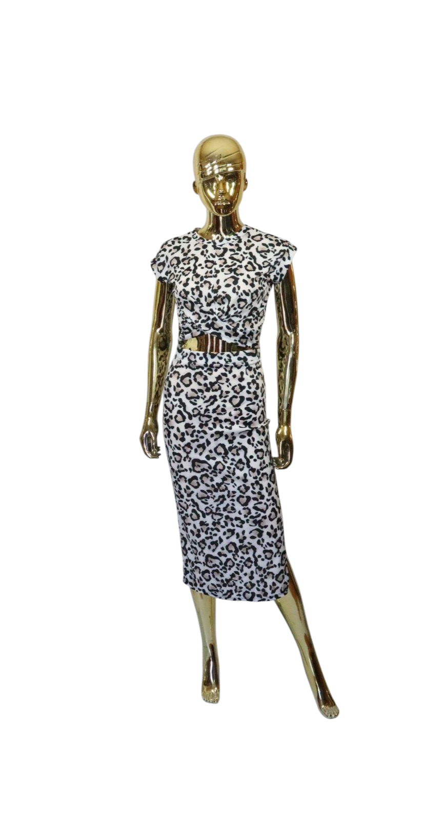 Komplet składający sie ze spódnicy z rozporkiem oraz krótkiej bluzki. Wykonany z materiału prążkowanego, niezwykle miękkiego oraz wygodnego. Niecodzienny krój zapewnia komfort noszenia oraz oryginalny look.
