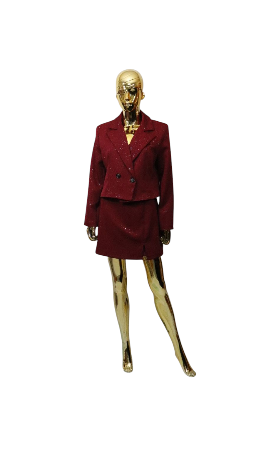 Niezwykle wygodne i modne spódnico-spodenki oraz krótka marynarka z ozdobnymi cyrkoniami. Idealnie sprawdzą się w stylizacjach codziennych jak i casualowych.