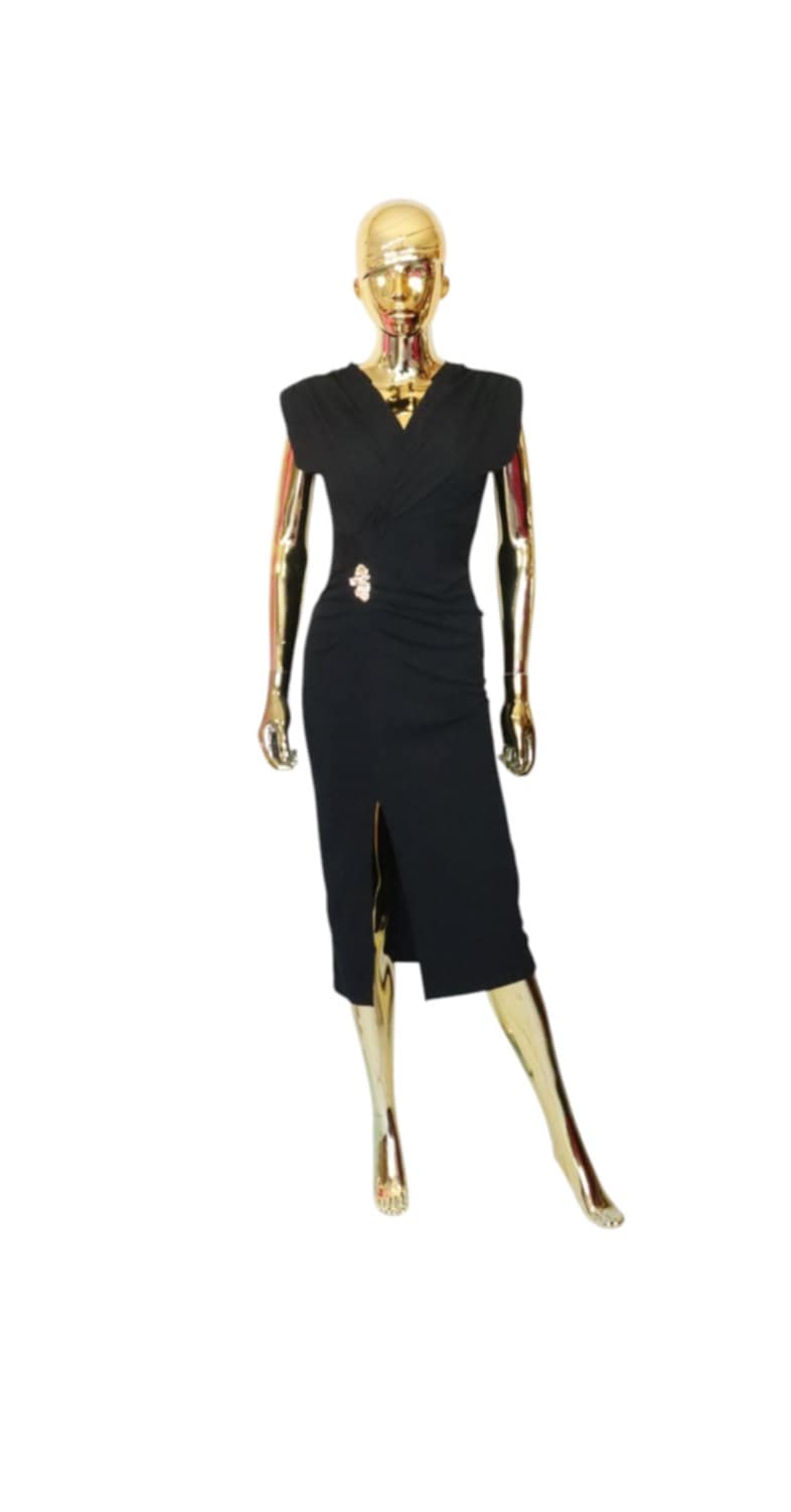 Sukienka midi z rozporkiem na dole, wykonana z prążkowanego materiału. Niecodzienny krój zapewnia komfort noszenia oraz oryginalny look.