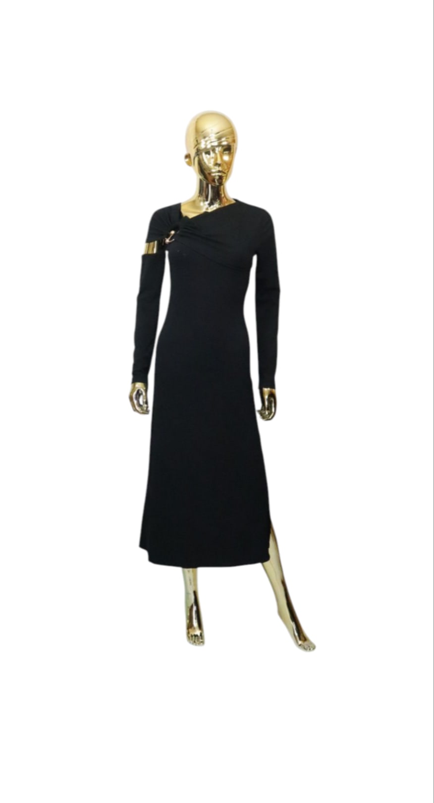Sukienka midi wykonana z prążkowanego materiału z efektownym rozporkiem. Niecodzienny krój zapewnia komfort noszenia oraz oryginalny look.