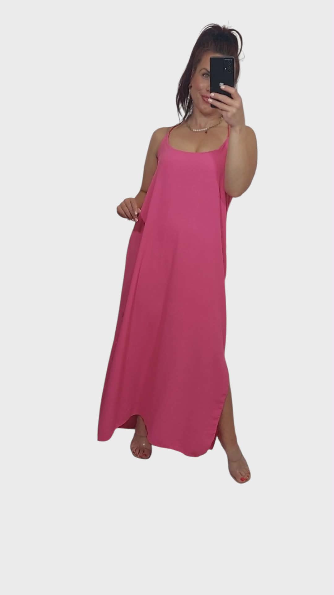 Sukienka maxi z rozporkami  na dole, wykonana z lekkiego, zwiewnego materiału. Klasyczny krój zapewnia komfort noszenia oraz oryginalny look.